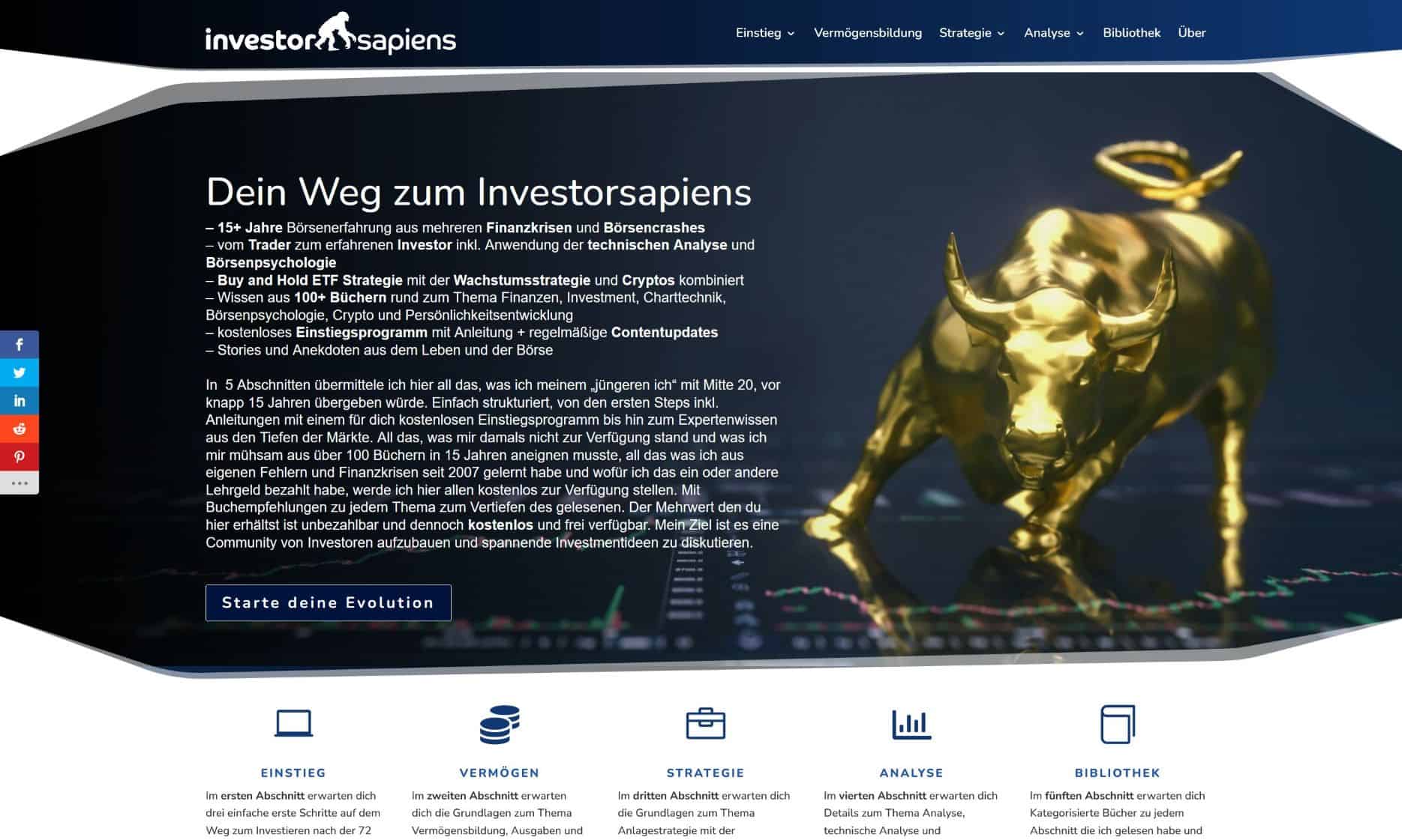 Besuche gerne die Seite und lasse dich in aktuell 5 Abschnitten von den absoluten Basics bis in die Tiefen der Märkte inkl. Analytik und Börsenpsychologie abholen und finde den perfekten Einstieg zum Investieren für Anfänger im Börsencrash 2022 / 2023.